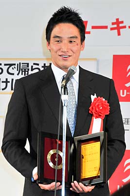 松田 丈志 さん(〔株〕コスモス薬品所属 ロンドン五輪競泳日本代表)7月31日、ロンドンオリンピック競泳の最終日。男子400mメドレーリレーで史上初の銀メダルを獲得したのは、兄貴分・北島康介の「メダルなし」はないだろうと「レース前に3人(入江陵介、藤井拓郎、松田丈志)で話し合った」、その思いの結果だという。